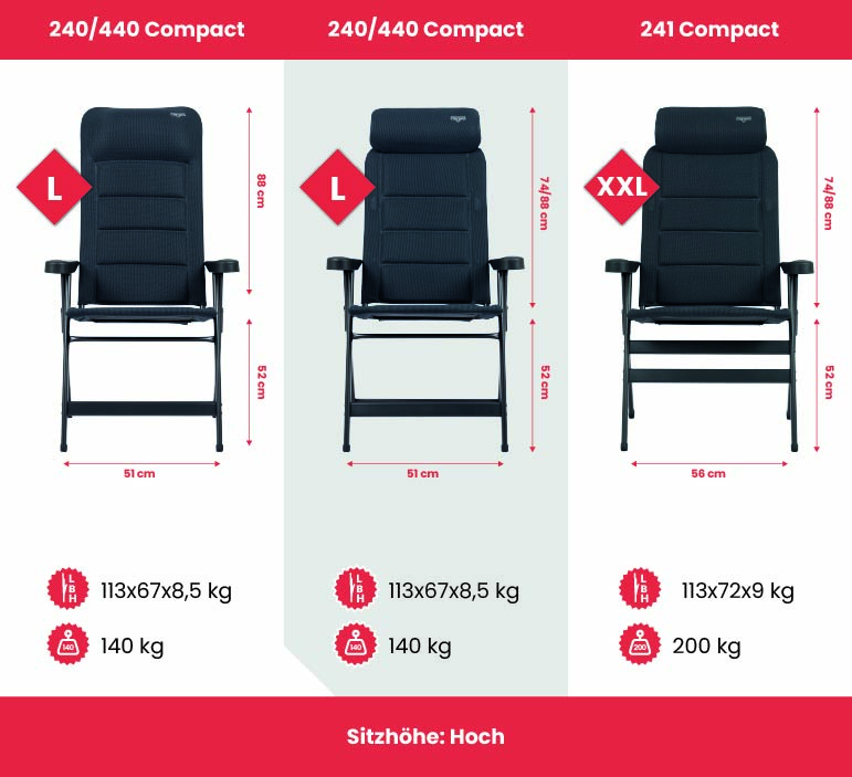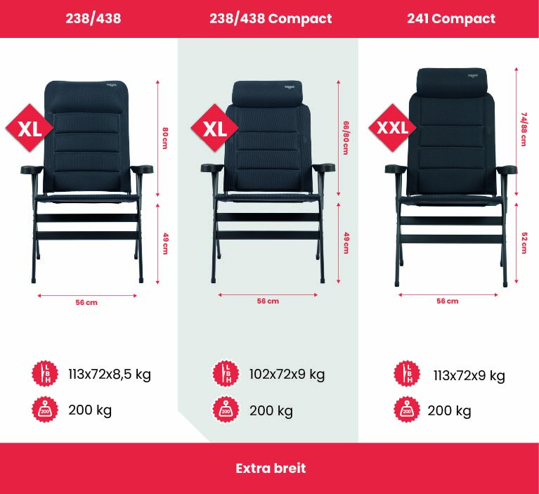Bevor wir uns mit den verschiedenen Größen beschäftigen, sprechen wir über die Compact Kollektion von Crespo. Diese Kollektion besteht aus Campingstühlen, die besonders kompakt sind und besonders leicht mitgenommen werden können.