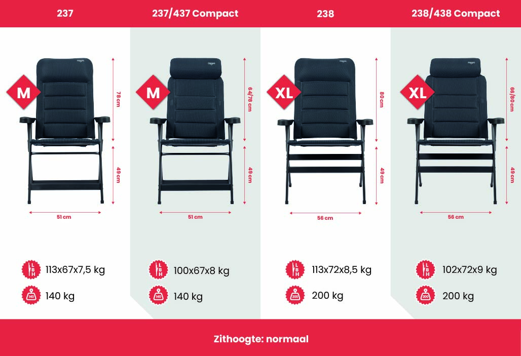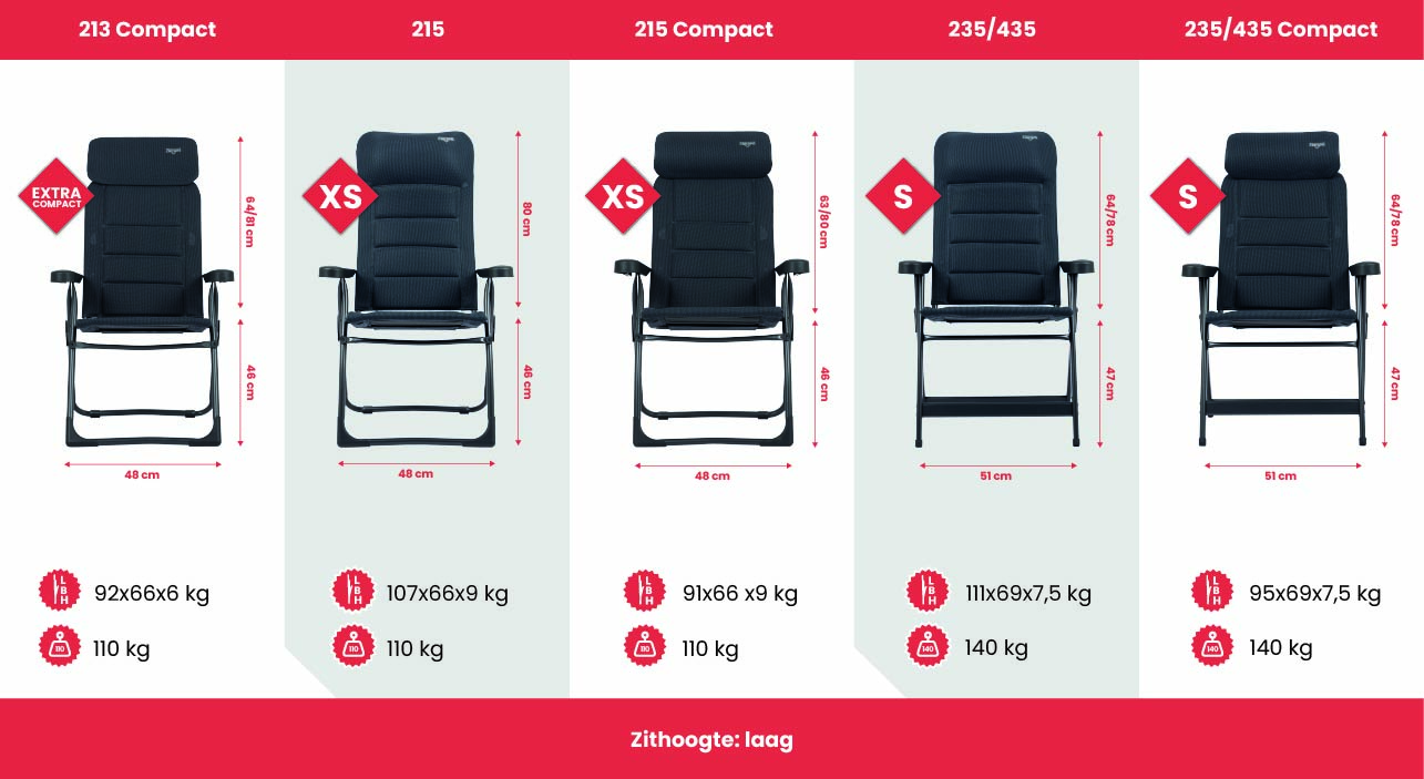 Voordat we ingaan op de verschillende soorten maten, gaan we het eerst hebben over de Compact collectie van Crespo. De collectie bestaat uit kampeerstoelen die extra compact zijn, waardoor deze dus zeer gemakkelijk mee te nemen zijn.